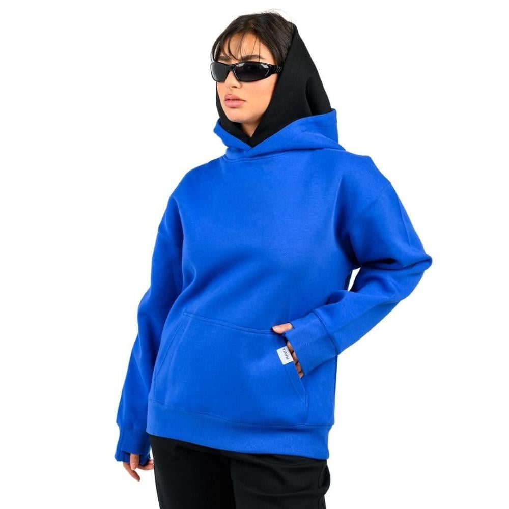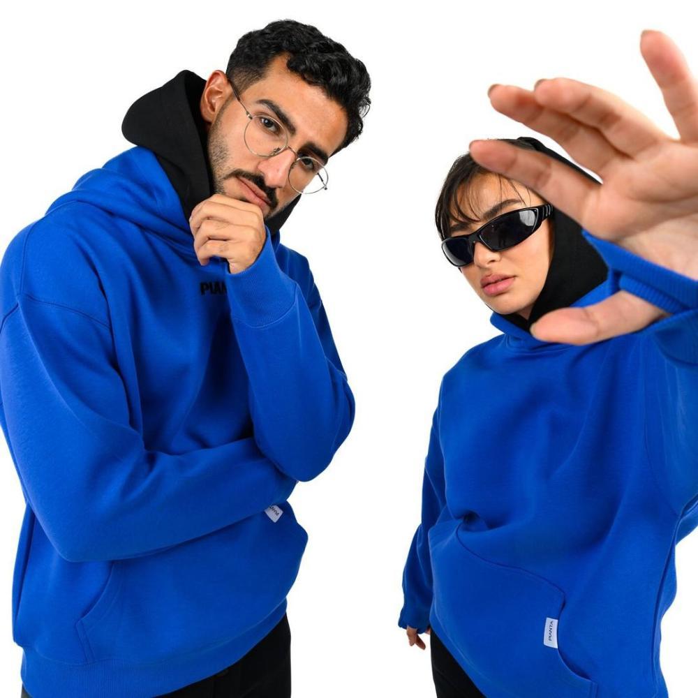 بلوفر ازرق دبل كاب اسود اوفر سايز بفتحة اصبع