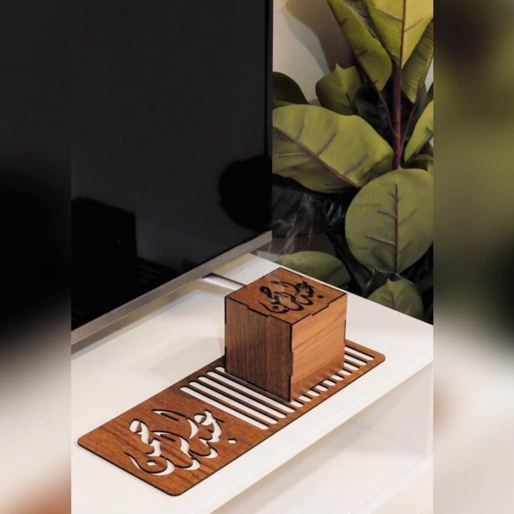 مبخرة و صينية الفخامة مصممه من الخشب بطابع انيق ليضيف لمسة فاخرة لديكور منزلك.